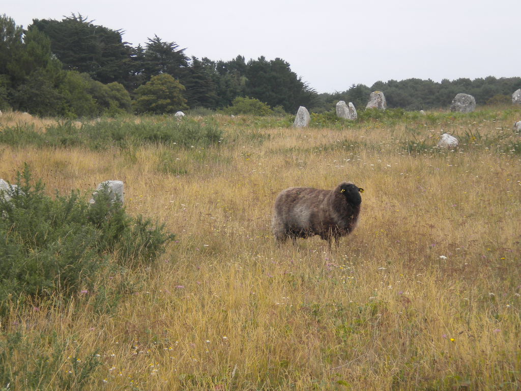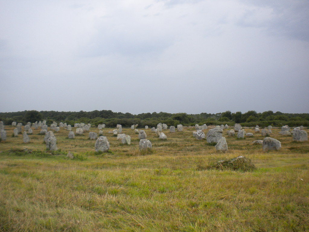 カルナックの巨石群には、メンヒルという直立した巨石が一列に延々と並んでいる形が多い。 草原の中に、巨大な石が黙々と並んでいる姿。