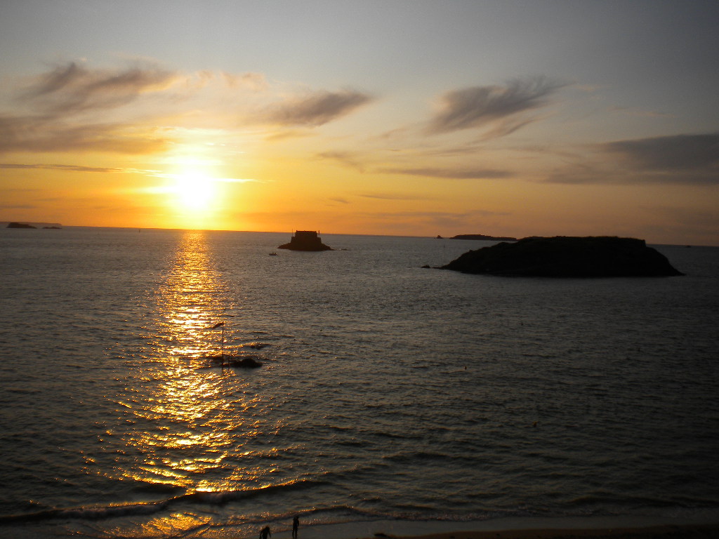 ブルターニュでも人気の観光の街、サン・マロへ! サン・マロの中心地から車で10分くらいの所で2泊。 ゆっくりのんびりリゾート気分。 城壁に囲まれた中心街は、いかにも観光地! 城門をくぐればレストランが軒を並べ、テラス席には大勢の観光客。 メインの通りにはお土産屋さんがいっぱい。 こういう、いかにもな物が そして城壁の外には、美しい海とビーチが広がる! 潮の干満の差が大きいことで有名なサン・マロ。 夕焼けが美しいですね 手前の二つの小さな島。 水に埋まってるけど、潮が引くと歩いて行けます。 まだ水の中 潮が引くと歩道が現れる 大きい方の島、グラン・べからサン・マロ市街 グラン・べから小さい島、プチ・べ この時まだ水の中 潮が引くと、あたりはムール貝がびっしりで気持ち悪い。笑 黒く見えるの、全部ムール このプールは潮が満ちると水没。 ビーチも冠水する。 そして風が強い日はもの凄い高波が襲ってくることもあるとか。 こんな標識が… せっかくきれいなビーチがあるので泳がなければ!と思ったけど、水が冷たすぎて無理。 写真のプールならなんとかなるかな、と思ったけど、決死の覚悟で一瞬だけ水に入ったけど、長時間泳ぐのはやっぱり無理だった。 設置されてる飛び込み台からバンバン飛んでる人とかいたけど、わたしがやったら死んだな。 ビーチに人はいっぱいだけど、やっぱり泳いでる人は少数で、みんな日光浴や昼寝が目的みたい。 そういえば、わたしがサン・マロの名前を初めて知ったのは、マンガの「のだめカンタービレ」の中だった。笑 のだめが初リサイタルを開いた街。 のだめが街の中でクイニーアマンを食べてたのを思い出して、「わたしも食べなければ!」と購入。 味は日本で食べたのと同じようなものだった。 でも本場で食べれたので満足。 2日目の夜は、宿泊先のマダムがお勧めしてくれたので近くの街、ディナンに行ってみた。 サン・マロから車で40分くらい。 小さい街だけど、中世の古い街並みがきれいに残ってて、なかなかいい雰囲気。 観光する、というよりは、のんびり散歩するのが似合いそう。 街の中に古い時計塔が残っているので上りたかったのだが、着いた時には既に受付終了。 いや…。 18時30分終了と書いてあるのに、わたしたちが着いた18時15分には扉が閉められてた。 この、いかにもフランス的な出来事。 ディナンは海に面してないけど、サン・マロから船で川を下ってこれるという立地。 海は遠くない。 魚介たっぷりのパスタが食べたい!ということで選んだイタリアンレストラン。 …大外れ。 知らない土地でおいしい物を探すのは難しい…。 でも、この前日にサン・マロで入ったビストロは大当たりだった! 久しぶりに「料理人が作った料理」を食べた。 ちょっと高かったけど、それでも納得な味。 メインの通りから少し離れたところにあった。 観光地ではそういうところを選ばないとね。 ディナンのイタリアンは、よく目立つところのおしゃれな雰囲気を醸してる店だった。 この人だれか知らないけど、かっこいい ジャック・スパロウに会いました サン・マロはその昔、海賊の拠点の街だったとか サン・マロの日本食レストラン