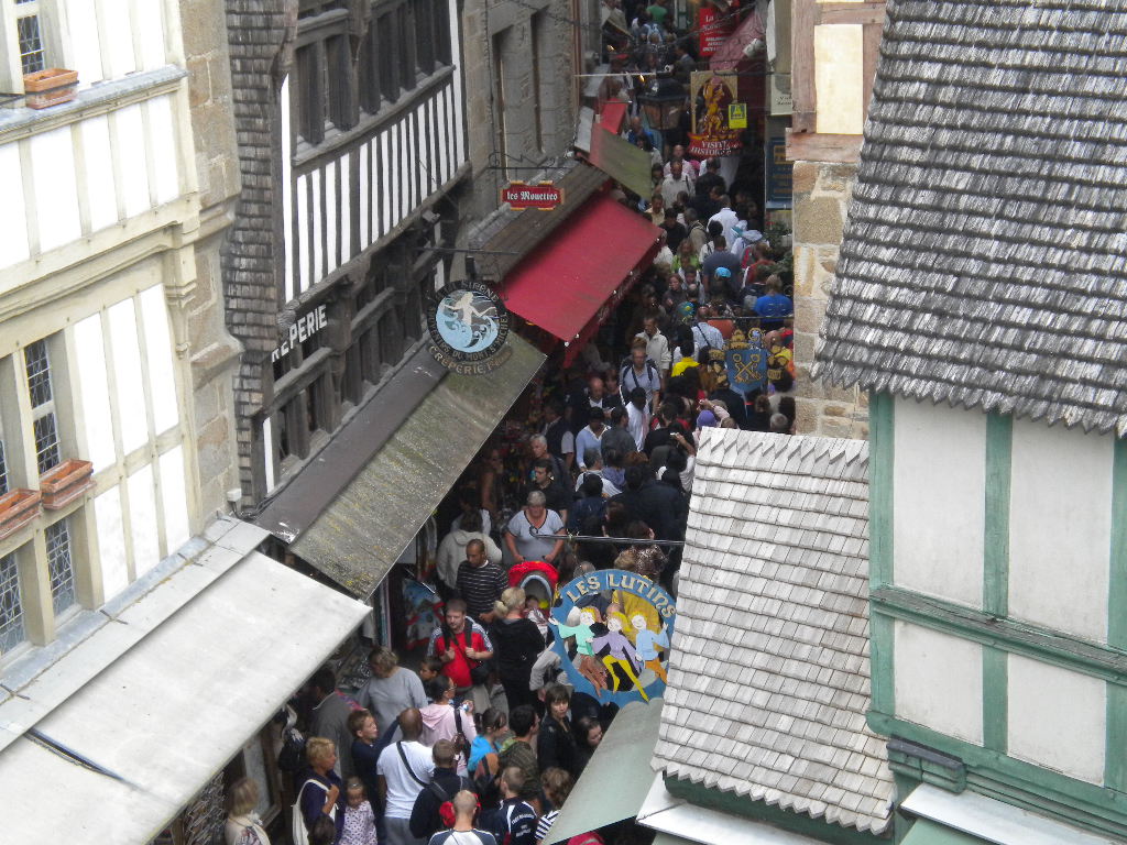 サン・マロのあと、いよいよやってまいりました!! フランスの観光地といえば、ココ! モン・サン・ミシェルでございます~。 じゃん! もうここは、場所の説明は必要ないな。 日本人は「パリに行ったらモンサンに行かないとね!」と思うみたいだけど、それって「東京に行ったら大阪も行かないとね!」というのと距離的におんなじことらしい。 それでも日本人は根性で、日帰り往復10時間をこなしている。 そんななか、わたしはモンサン近くのホテルで優雅に3泊。 ちょっと遠いけど、歩いていける距離。 バカンスまっただ中のこの時期、午前中は島に向かう道が、午後からは帰っていく方の道が、という具合に1日中渋滞しているモンサンにつながる一本道。 なかなか動かない車の横を余裕で歩いているのは、ちょっとした優越感。笑 ホテルに荷物を置いて、さっそく修道院訪問! と思ったけど、島の城門をくぐると、その先は人だらけ! いや、当たり前なんだけど、ホントにすごい人で。 修道院に向かう道はかなり細いのだが、人が溢れかえっててなかなか前に進めませ~ん。 で、やっと修道院にたどり着いても、チケット売り場で大行列。 20分ぐらい並んで、やっと内部へ。 修道院の中は結構広いので、人が多くてもそんなにごみごみしてる印象は無し。 それでももちろん、常に写真には大勢の人が映りこむ。 内部は、修道院らしくかなり簡素。 モンサンは、外から見てこそ価値があると実感。 塔の上にミカエル様 これはコピー 修道院から下る道に途中にはこんなものが この子、誘拐したいくらいかわいいw 修道院を出てからは、来た時と同じ道は通らず、城壁の上を移動。 城壁からは、周りの干潟が見渡せる。 どこに海があるんだろう? そして、修道院に向かう人々も見下ろせる。 城壁の上の方が断然人が少なくて歩きやすいのだが、下の方が雰囲気を楽しめる、と思います。多分。 この大勢の人々、かなりの割合で日本人。 聞くところによると、年間観光客の70%が日本人らしい。 モンサン、日本人がいなくなると倒産します。 なので、島内にあるレストランは必ず日本語のメニューが置いてある。 外のメニューにも 店の看板もこんなんだし お土産屋さんの店員は日本人だし。 あっちこっちで日本語の会話が飛び交ってるし。 モン・サン・ミシェルはもはやフランスではない!! あたしゃ、いったいどこに居るんだ~?という変な気分になってくる。 修道院に向かう道、すっごくあの雰囲気に似てる。 あれ、日曜の竹下通り。 道狭いし、人多いし、クレープ屋もあるし、外国人?多いし。 さてさて、モンサンにやってきたのには観光とは別の、もう一つの理由がある。 それは、2月にロバさん家で一緒にウーフをしたAtsueさんに会うためだ! 彼女は現在、モンサンの某有名レストランの系列で働いているのです。 夕方彼女と合流して、一緒に夕食をということになった。 なにを食べようか?となった時、「あれ食べちゃう?」ということで。 行ってまいりました、某有名レストラン。 そしてその代名詞のあれ! オムレツだーい!! このオムレツ、オムレツとは思えないくらいお値段がお高い。 自分ひとりなら絶対食べなかったと思う。 でもせっかく提案してくれたし、思い出にもなるしと思って挑戦。 したら!なんと!! レシート見てビックリ仰天!! Atsueさんは今は別の所で働いてるけど、このレストランは元職場。 そんなわけでAtsue様価格! 「ホントにいいのかな??」とキョドってしまうほどサービスしていただいたのでした。 食事のあとは、現職場の対岸のホテルでさらにお酒をごちそうになってしまい。 「Atsueさま~」と拝んでしまった。 わたしにとっては、ミカエル様よりAtsue様です。